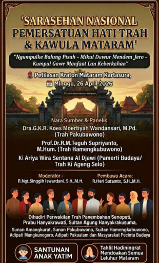 SUKOHARJO , 18 April 2026 – #PENALANGIT.COM – Dalam rangka Haul -ke 300 Leluhur Catur Sagatra Sunan Amangkurat Jawi, Oleh Pemerhati Budaya Catur Sagatra Mataram tahun 2025.